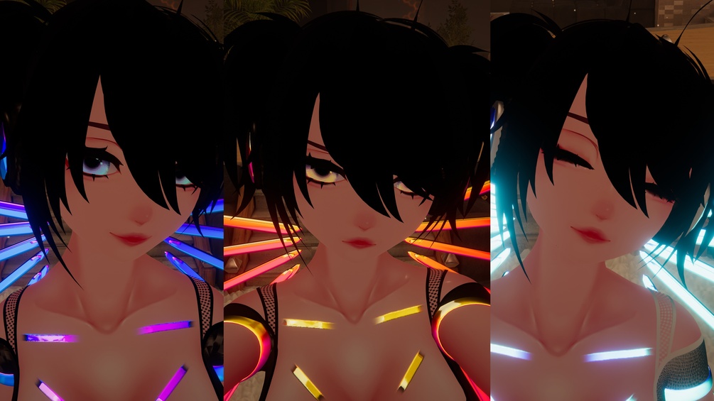 -3 Hue shift Radial (All plastic pieces, Bodysuit with hearts, Eyes).